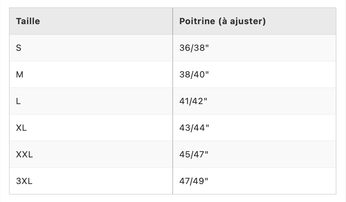 Tailles : XS au 3XL